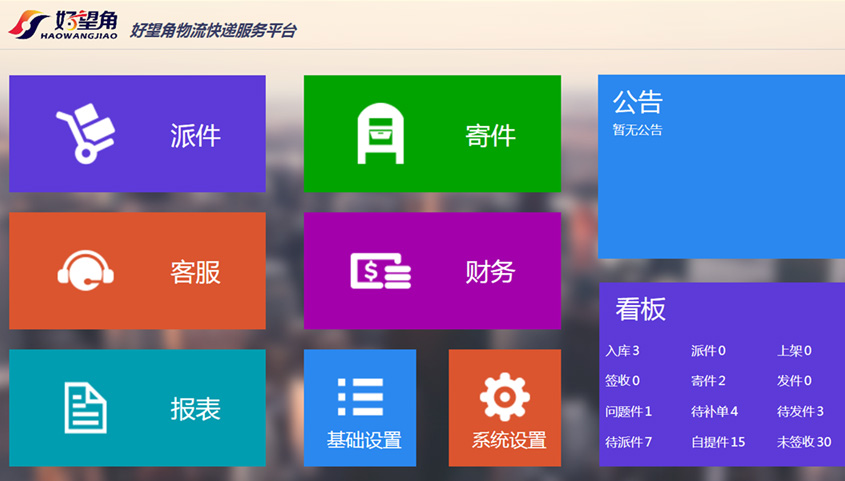 - 寄件:主要處理由快遞員接來的寄件單,包括既簡單錄入和處理等